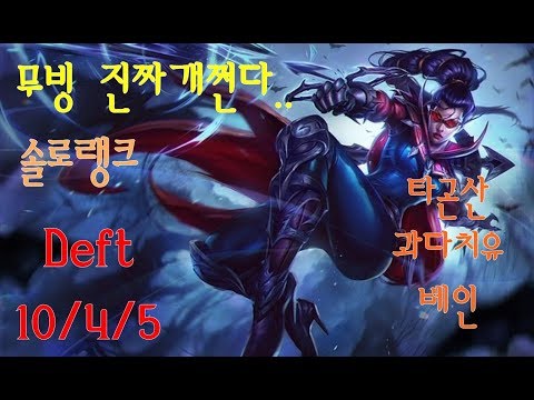데프트(Deft) 타곤산과다치유 베인vs이즈리얼 kda10/4/5 무빙실화냐....Full버전